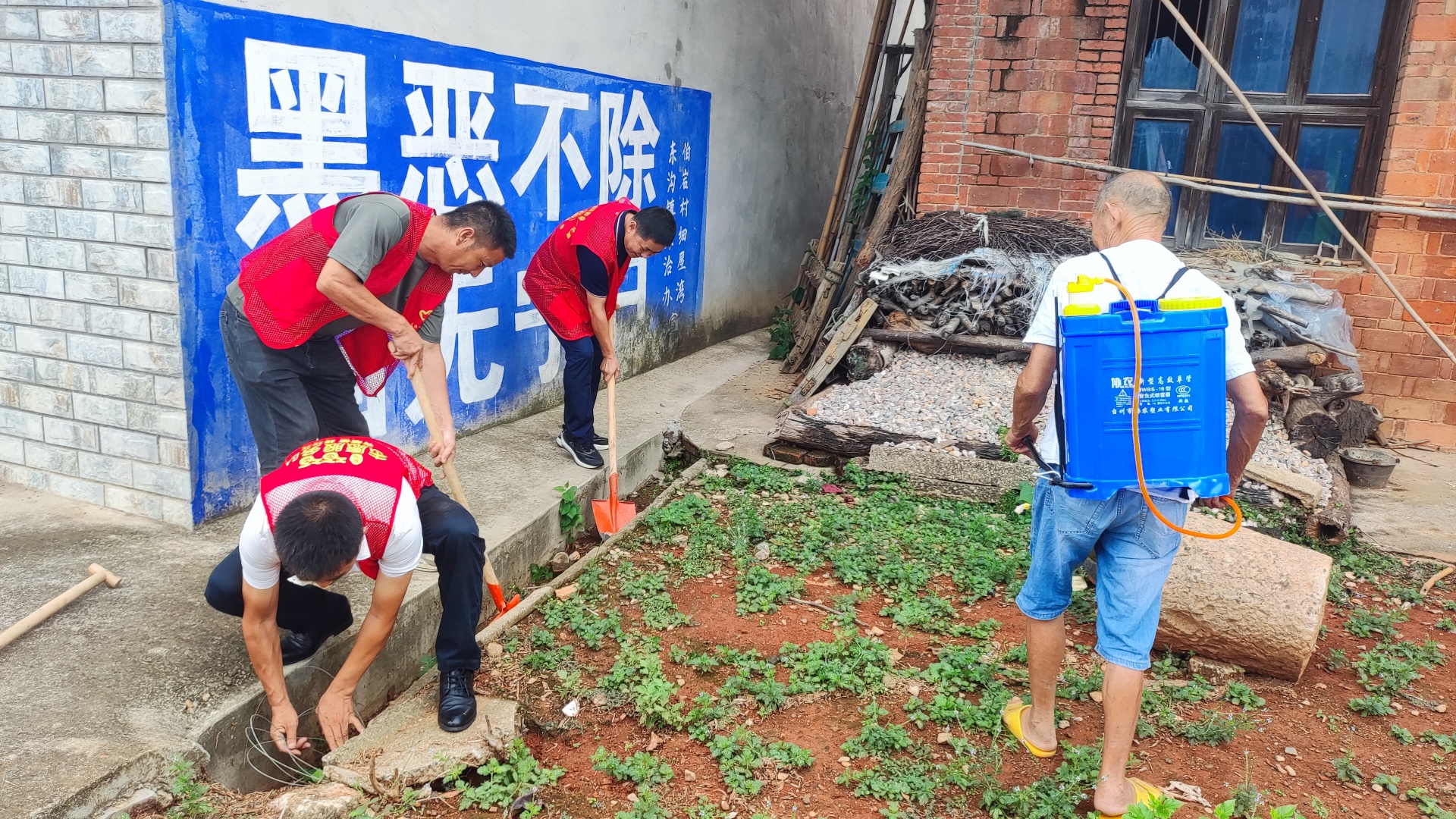 在结对共建村东沟镇伯岩村,市经信局、伯岩村联合召开动员会,组织干部职工及人民群众积极开展翻盆倒罐、灭蚊消杀活动。党员干部同村民一起对房前屋后、沟渠、雨水井、公共厕所、垃圾投放点等地点积水进行全面清理,喷洒环保型消杀药剂,清除卫生死角和蚊虫孳生环境,最大程度减少蚊媒传播疾病的风险,共同营造干净整洁、健康舒适的生产生活环境。