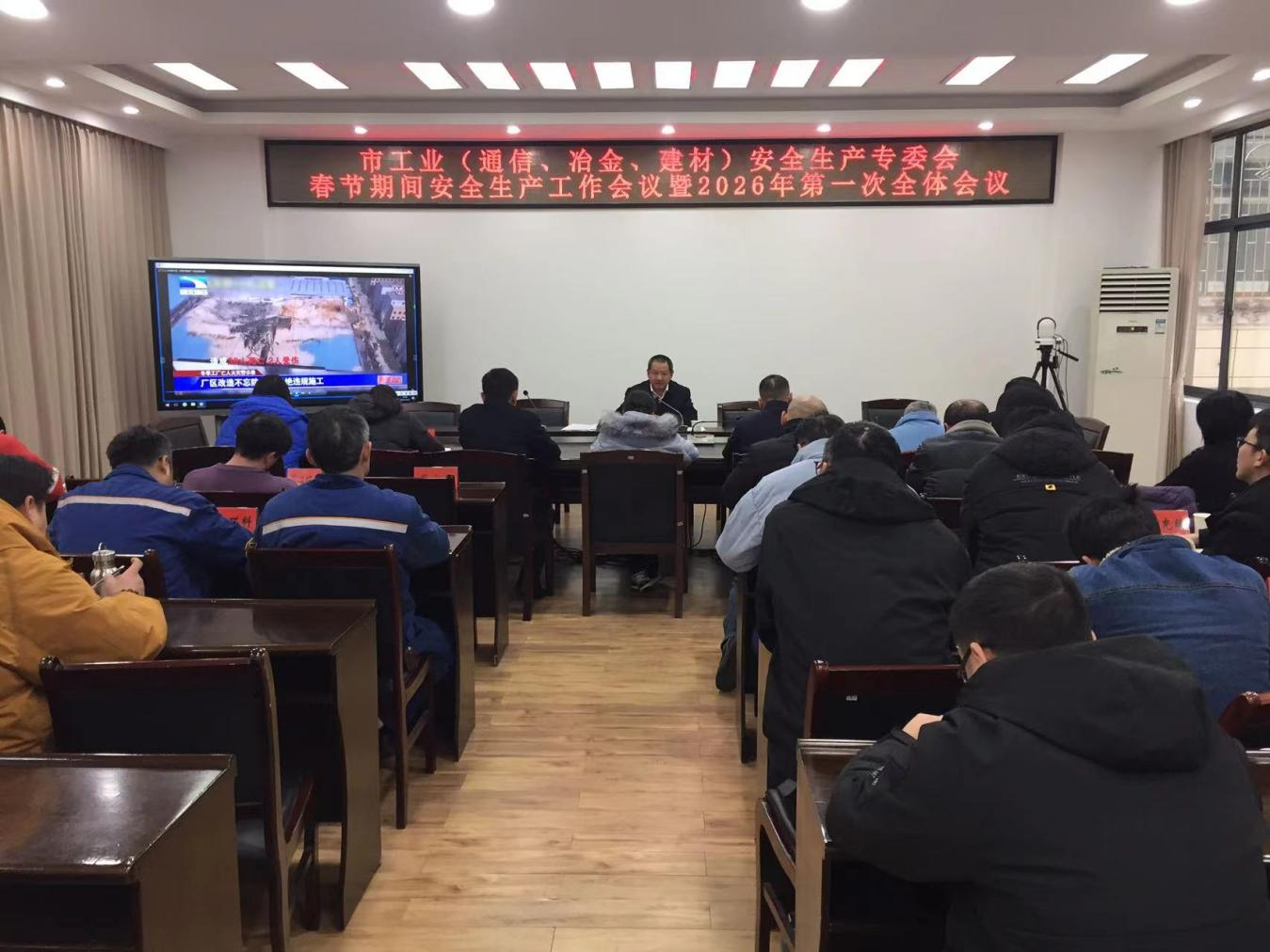 2月4日,市工业(通信、冶金、建材)安全生产专业委员会召开2026年第一次全体会议,专题部署春节期间工业行业安全生产工作。市工业安全生产专委会成员单位,各区、葛店经开区、临空经济区工业安全生产专委会及重点工业、通信、船舶制造企业相关负责人参会。